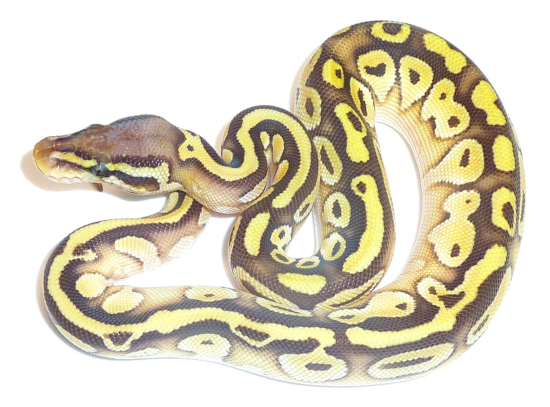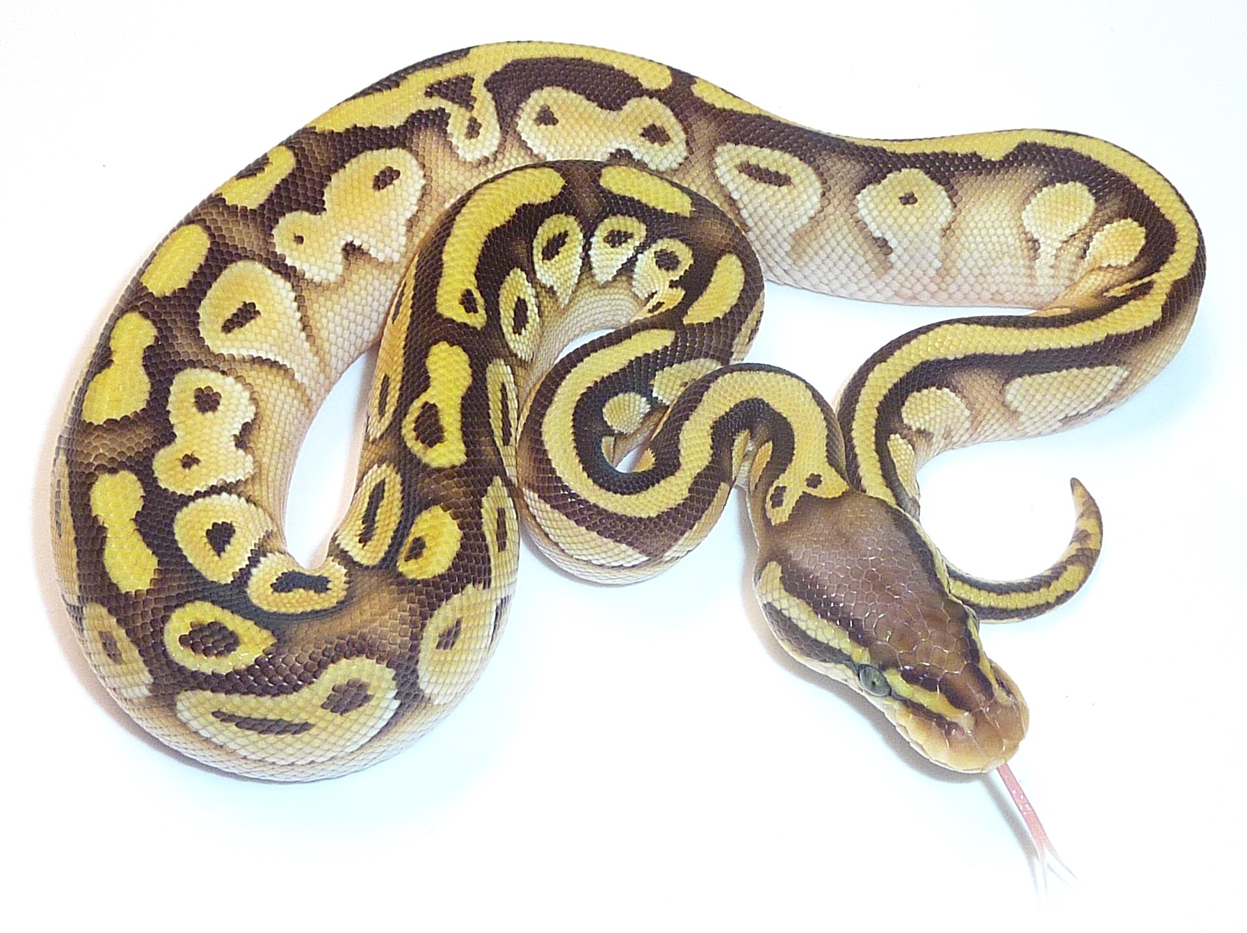 Purple head and striped yellow and brown pattern makes for a very handsome snake indeed. She is 81 grams and feeding on medium mice.