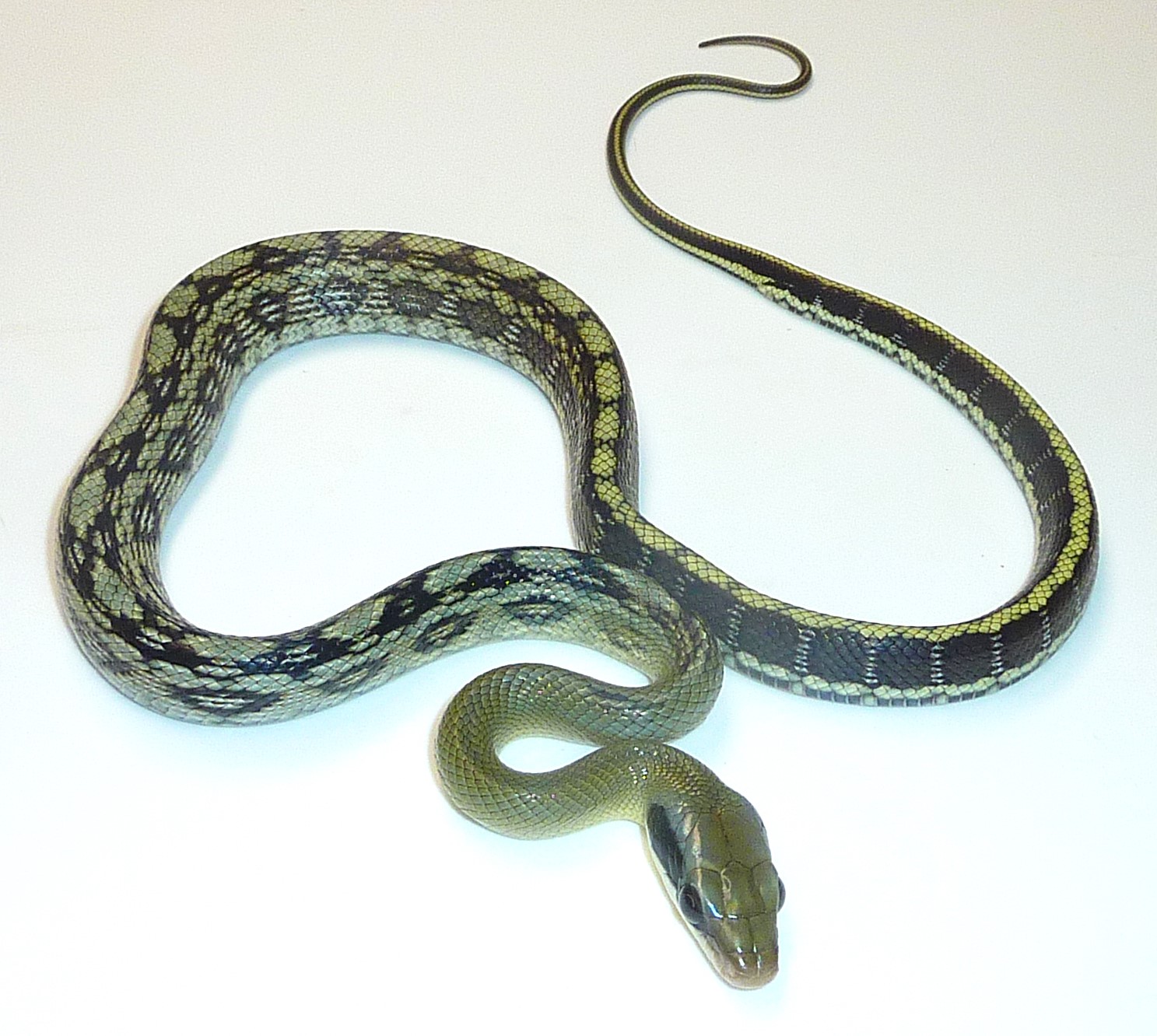 This amazing captive bred Orthriophis taeniura is a 22 inch female feeding on frozen thawed fuzzy mice. Pics of the parents can be found at the end of the roll.