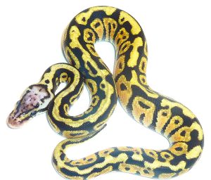 So this is a female from a black pastel to black pastel breeding and some panda pieds have eye stripes but we are only advertising her as a black pastel pied. She does have a white nose and red pupils. She is feeding on hopper mice.
